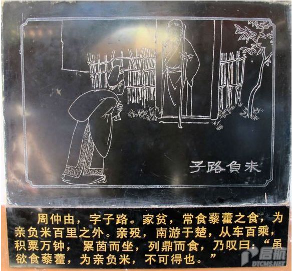 得呢?”孔子赞扬说:“你侍奉父母,可以说是生时尽力,死后思念哪!”(《孔子家语·致思》)负米供旨甘,宁辞百里遥。身荣亲已殁,犹念旧劬(qú)劳。